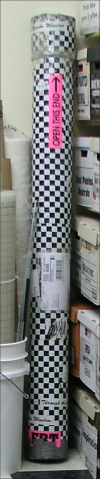 Here is a tube that has been around the world a couple of times. It's not as pretty as it was when it was new, but it is still very functional. The tube is covered with contact paper & clear tape. (LOTS OF TAPE). I line the inside of the tube with the same plastic tubing I use as a sleeve for the rolled quilt.
