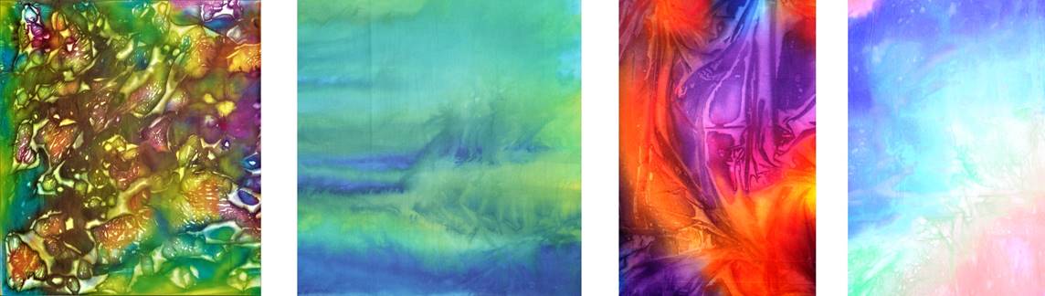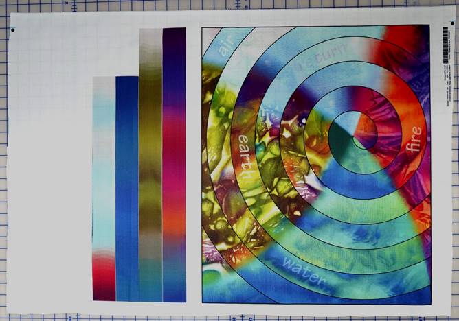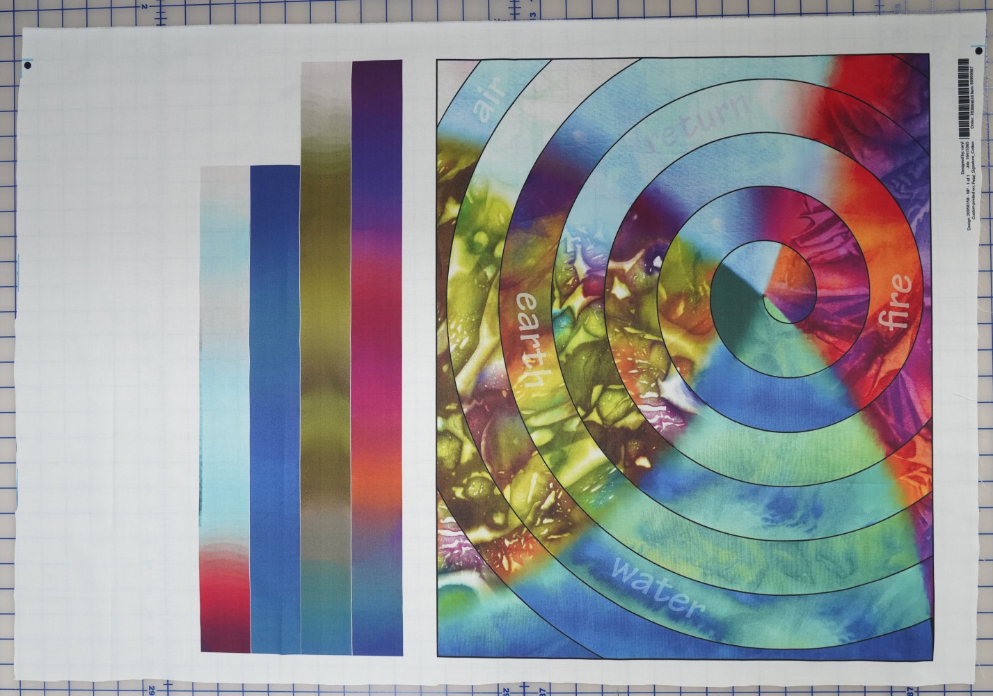 Next, I photographed four of my hand painted fabrics that had colors and patterns that reminded me of earth, water, fire, and air. I used these to fill the