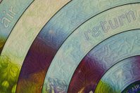 I didn’t like the sharp division between colors, so I turned the drawing into a bitmap and blended the edges in Corel PhotoPaint. I added the words earth, water, fire, air, and return in semitransparent lettering.