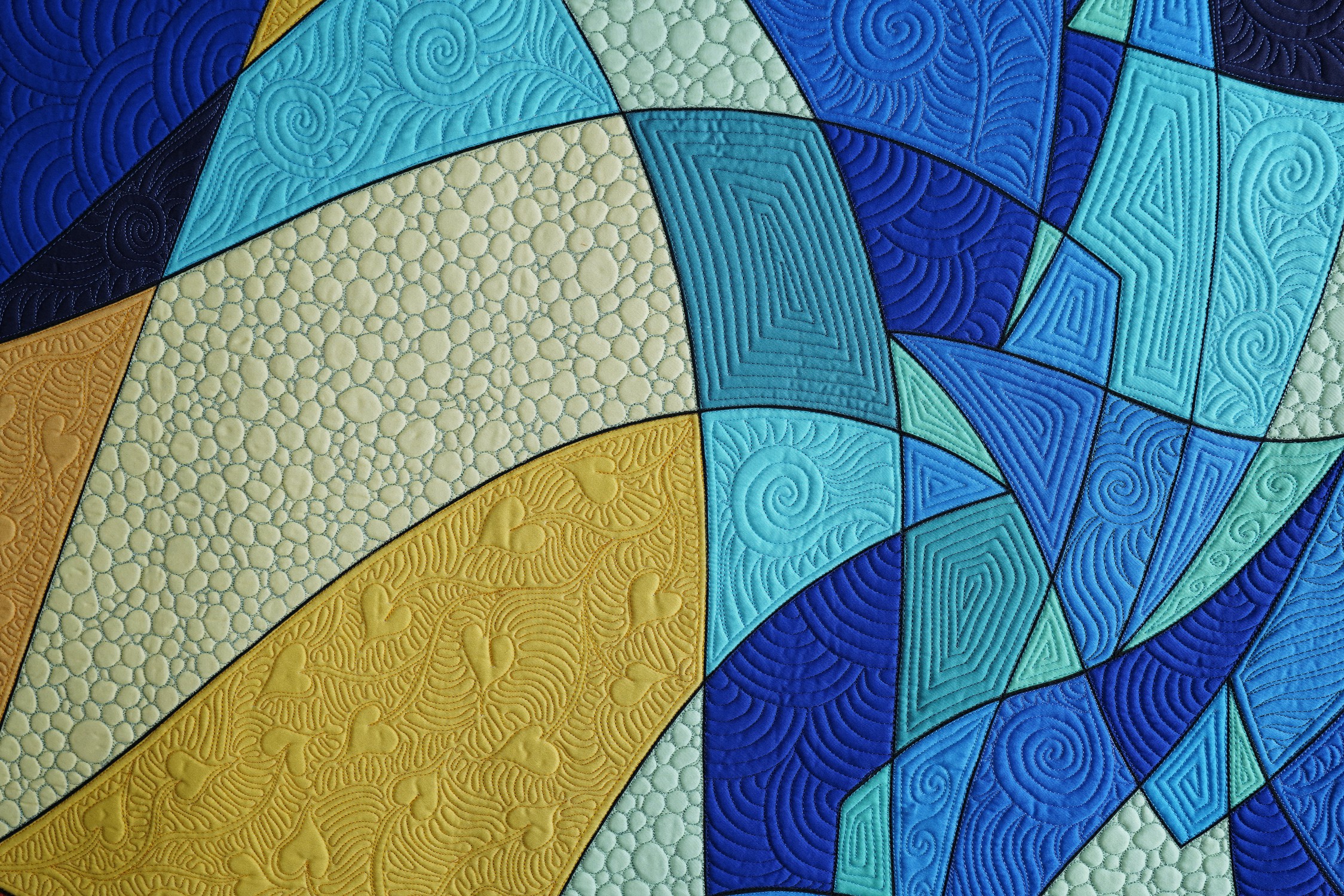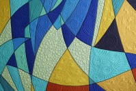 I filled the spaces between the lines with solid colors to create a canvas for playing with machine quilting patterns. I tried many different arrangements of color and value. |