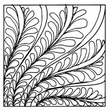 The design for this quilt began with a series of thumbnail sketches with wavy lines, radiating from a corner. I penciled in connections in many different ways, and picked the ones I likes the best. This is the second design in which I have used shapes drawn from traditional quilted "feathers". The feathers are pieced from four fabrics in my Gradations collection for Benartex. The background is pieced from eight different colors in my Electric Feathers collection.