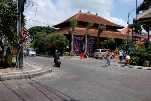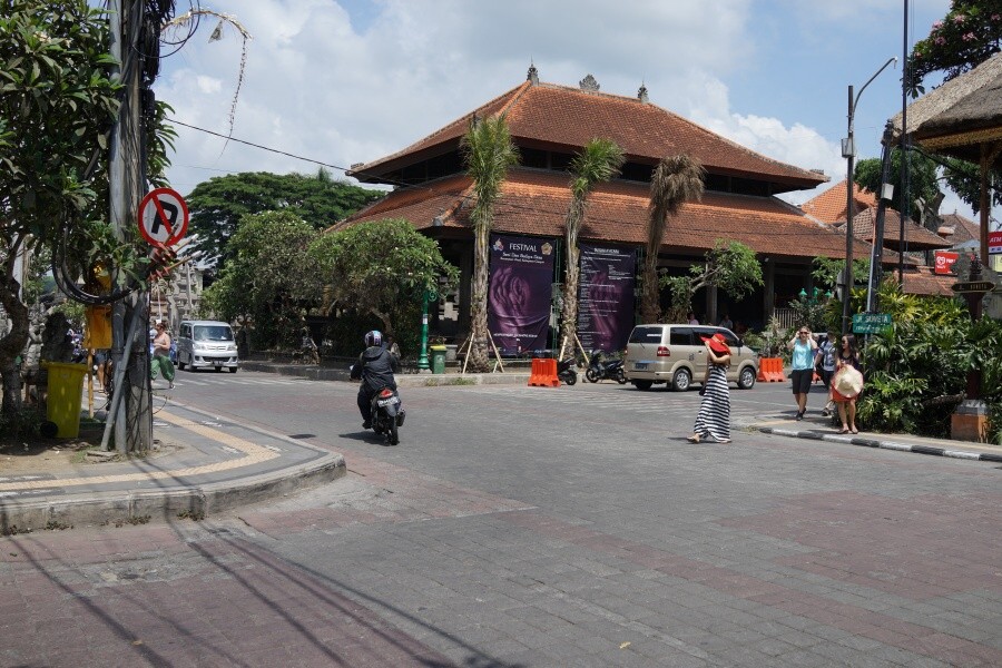 At a busy intersection in Bali, I snapped this picture, which included a girl in a black and white striped dress and red hat. I was drawn to the graphic impact of her figure, which made her stand out among the many other elements vying for attention in the scene. I decided to use her in a simple graphic study in black, white, and red.