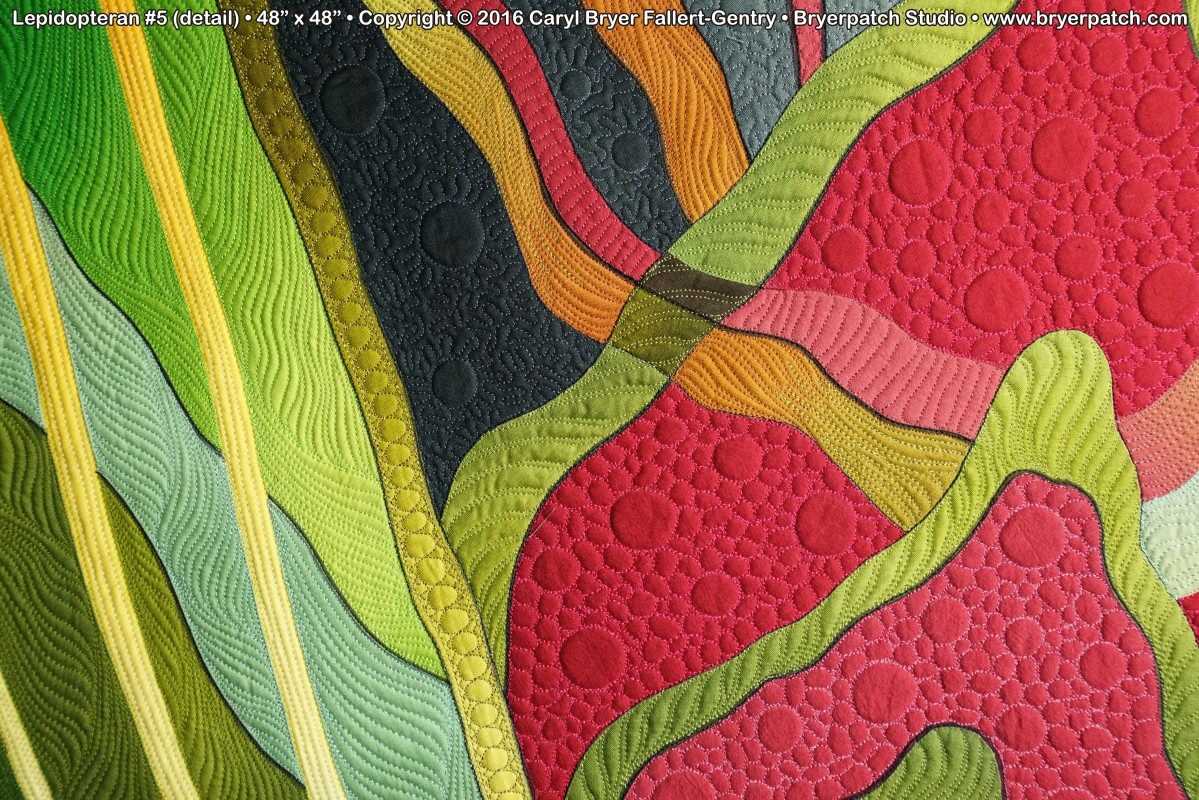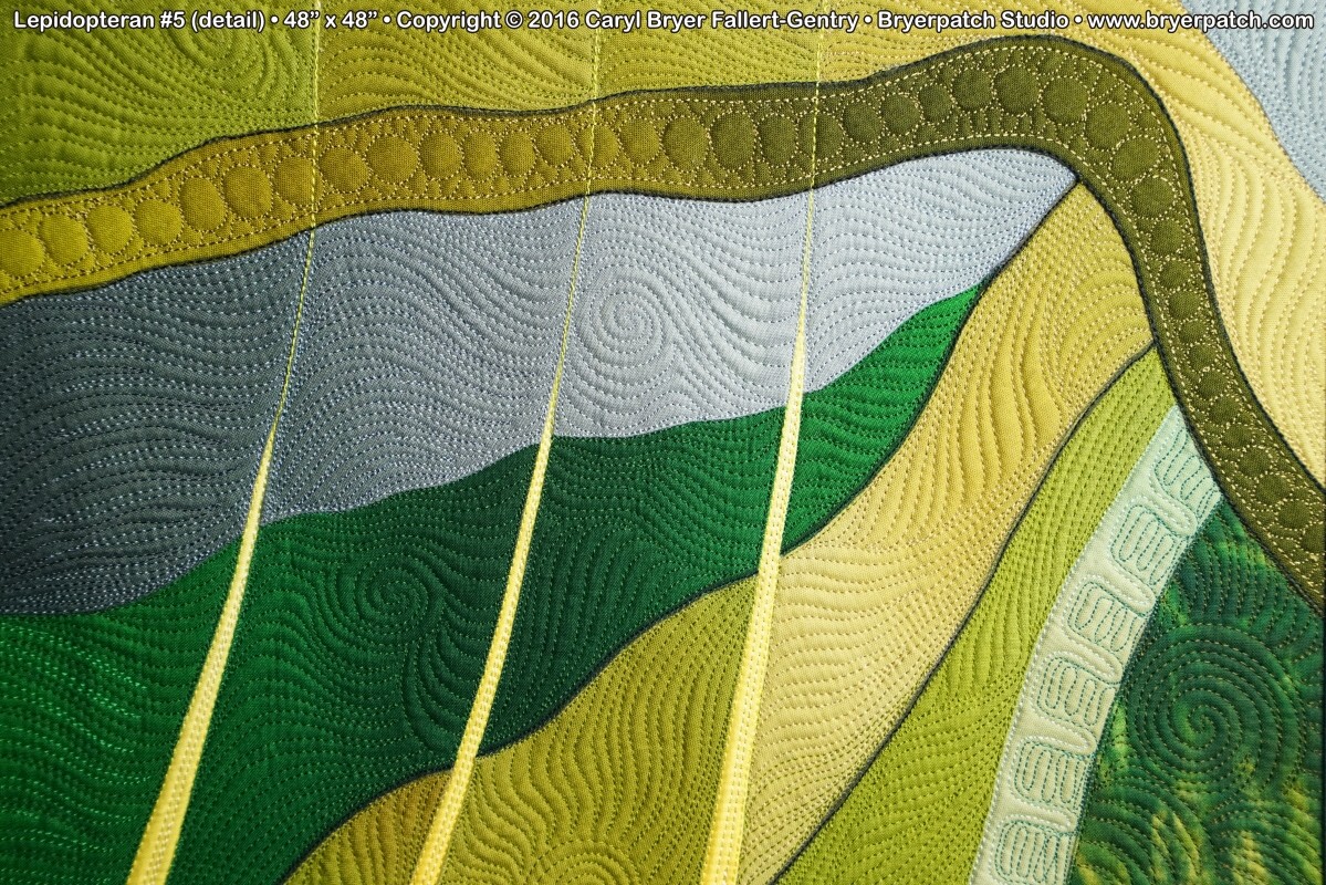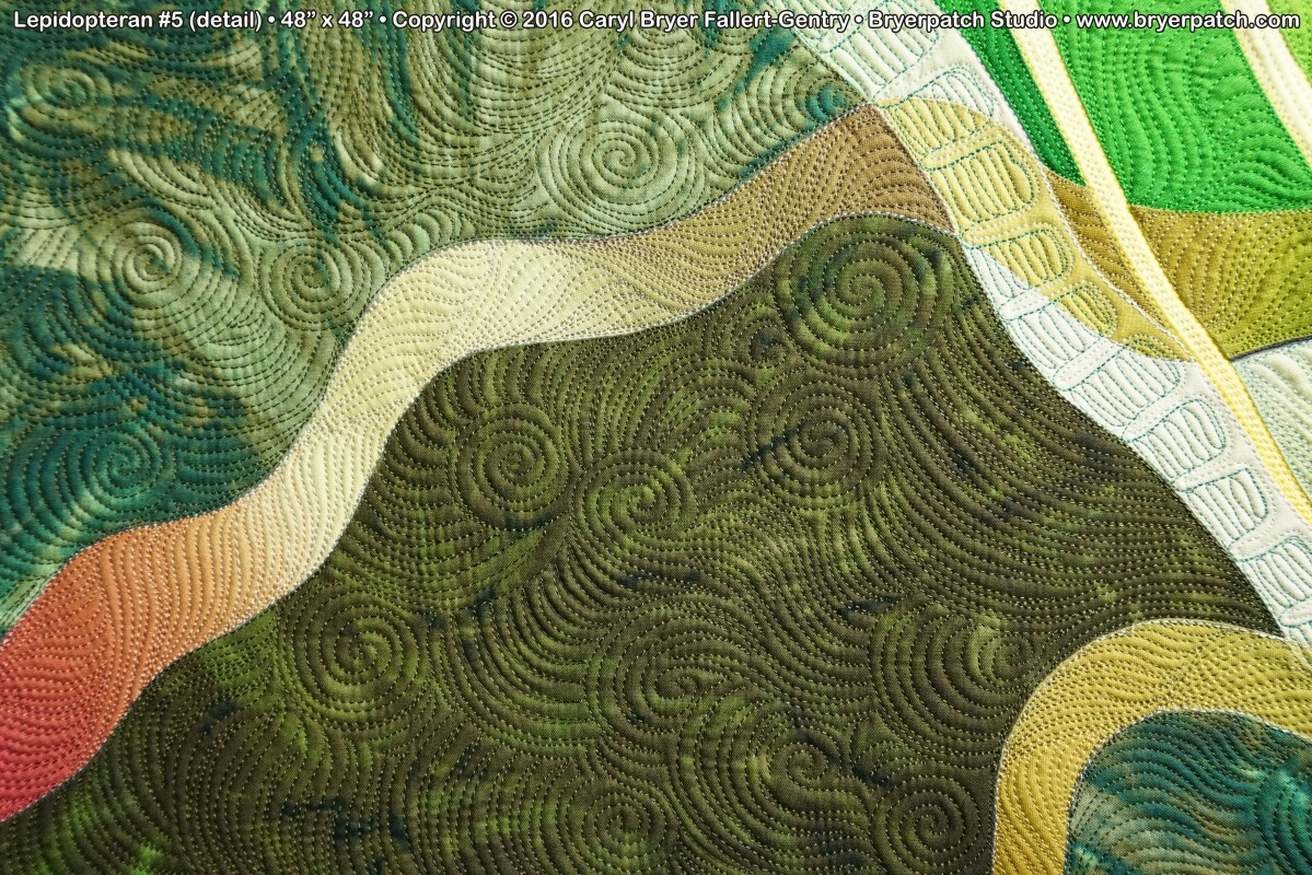 The quilting was done with dozens of different colors of thread, creating additional patterns and shading to compliment the overall design. |