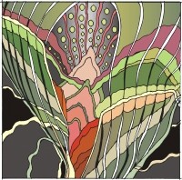 Rather than copy the photo, I studied the colors and patterns of the moth, analyzing what had made me want to save the photo in the first place. Then I used some of these patterns and colors to create a completely abstract design.