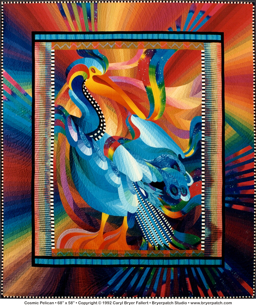 The design for this quilt began in 1990 with a simple line drawing of a pelican