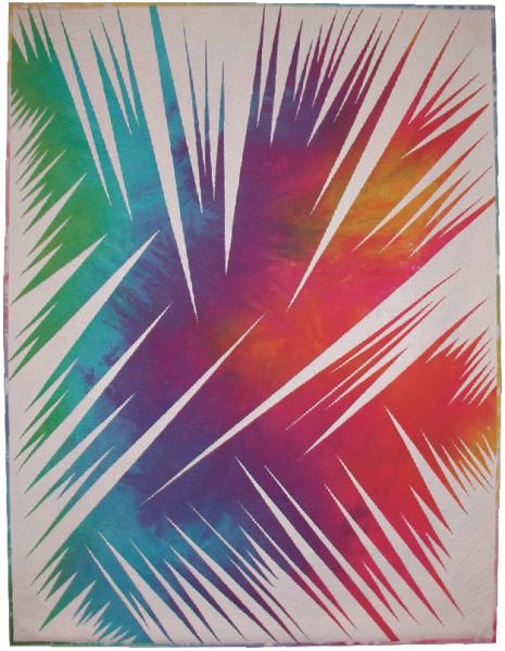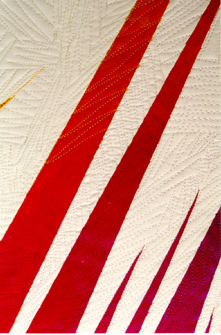 hues. These shapes were appliqued to a white background fabric. The entire