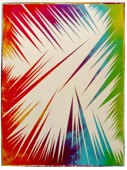 piece is quilted in the patterns of ice crystals with many different colors