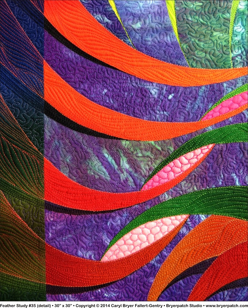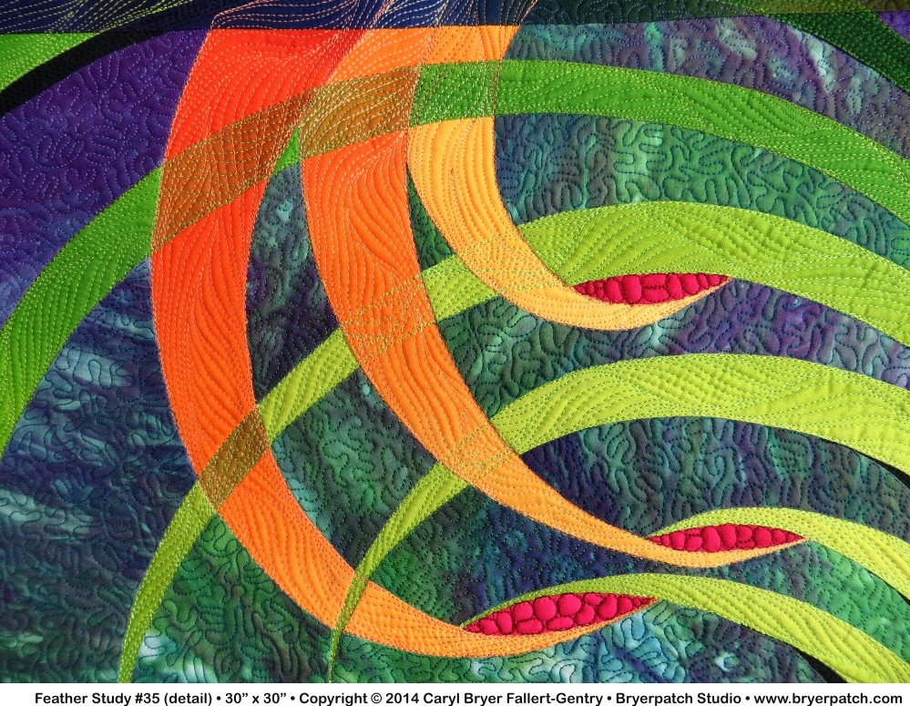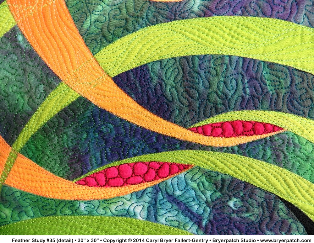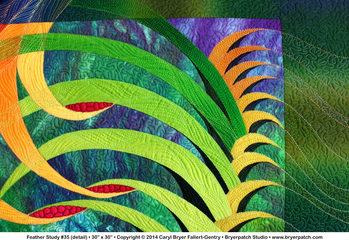 series of quilts inspired by a close-up view of a feather. The fantasy feather in this design evolved from one a series of hundreds of drawings