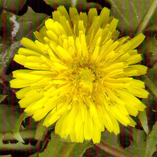 covered by a pile of dandelion leaves, and scanned at the highest possible