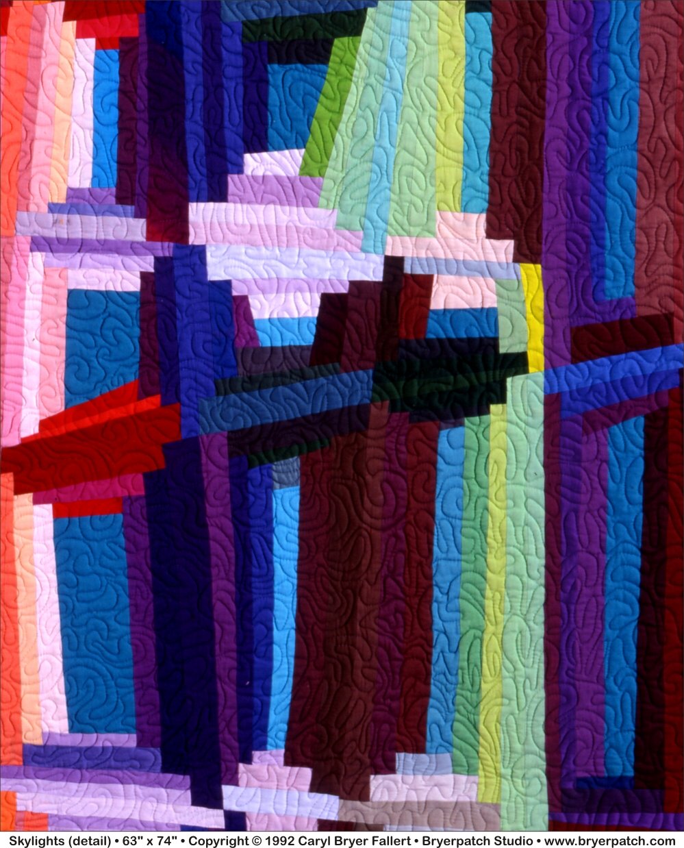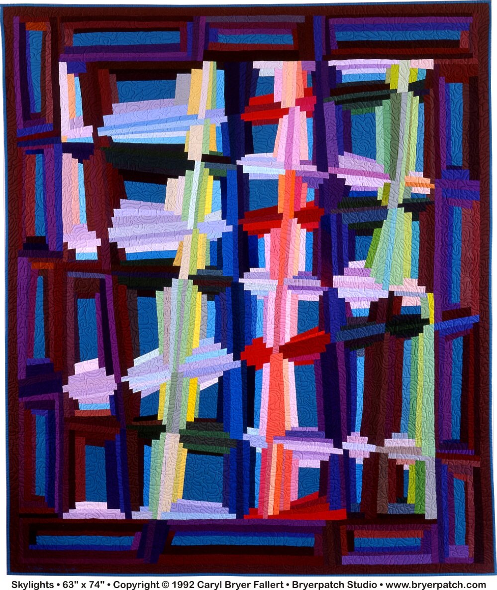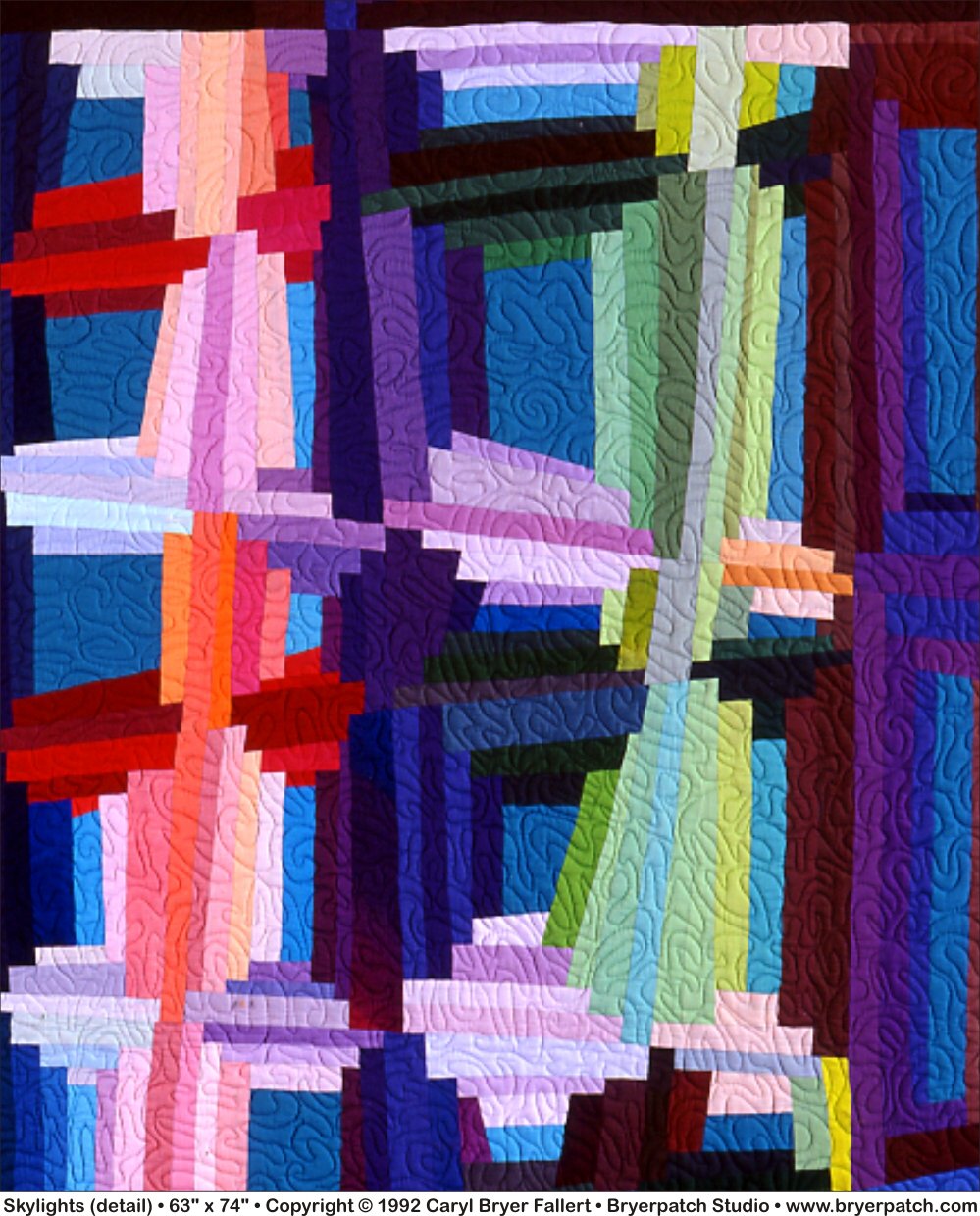 SKYLIGHTS is a scrap quilt made from strips of fabric, left over from several