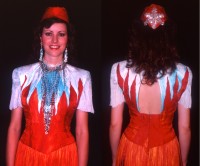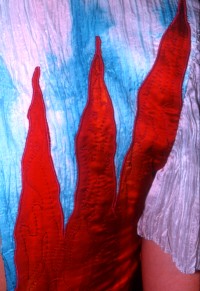 This garment is part of a series of art works based on fire and ice. In these works, fire and ice represent the conflicting emotions of passion for life, and fear, which often prevents full and joyful participation in life.