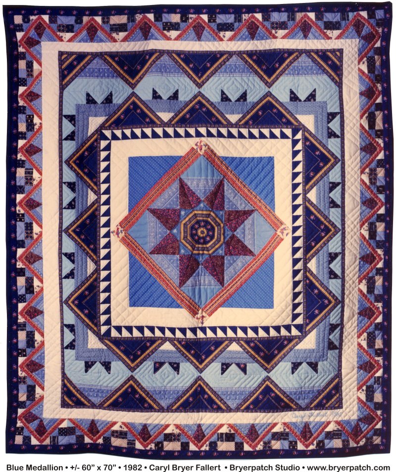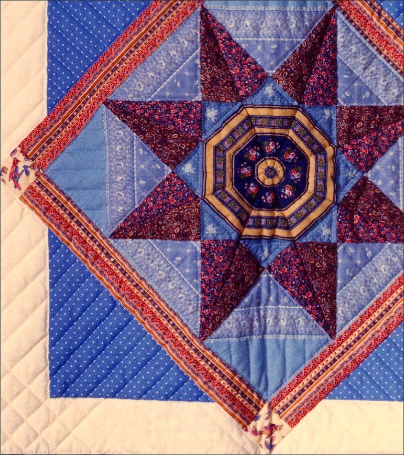 In 1982, I knew nothing about quilt guilds, or quilt shops, and I had never heard of the whole quilting subculture but, having made three bed quilts and a series of baby quilts, I went to the public library in search of inspiration. I found a book called A Quilters Album of Blocks and Borders, by Jinny Beyer, and I was immediately enthralled. Right on the back cover was a block I loved, called Castle Keep. I got out my graph paper, pencil, and ruler, and designed a medallion quilt around it.