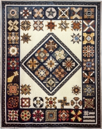 I proposed the idea to my local quilt guild, Prairie Star Quilters of St. Charles, Illinois, which drew quilters from throughout the western suburbs of Chicago. I found a book which had designs for traditional quilt blocks that represented the fifty states. I chose fabrics and drew the designs for each of the blocks, and distributed them to Prairie Star members in September of 1985. By November, the 50 blocks had been returned, and I assembled them into a medallion format, adding a traditional Prairie Star block in the center. Over the winter, the quilt traveled to various quilting bees, where it was hand quilted on frames by many additional quilters. I did the final feathered plumes in the center, to finish the quilting.