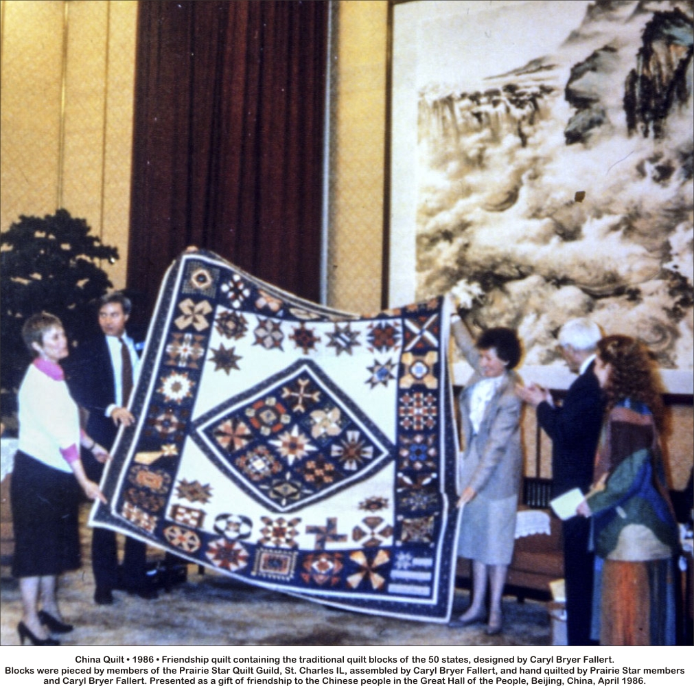 In 1985 I was invited to join a group of American artists and arts administrators forming a delegation, organized by People to People International, to tour the People’s Republic of China the following April. Since the purpose of the organization was to create understanding among people from countries with tenuous or strained diplomatic relations, it occurred to me that a traditional friendship quilt would be the perfect gift to take with me to China.