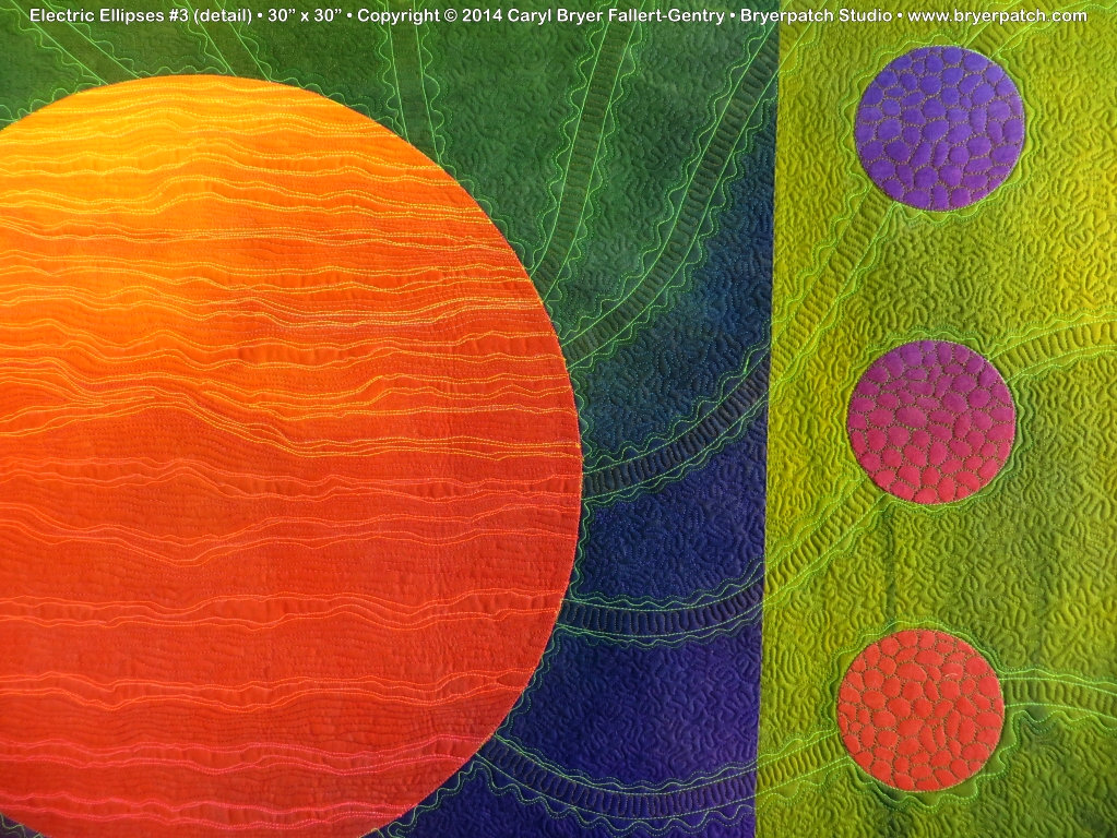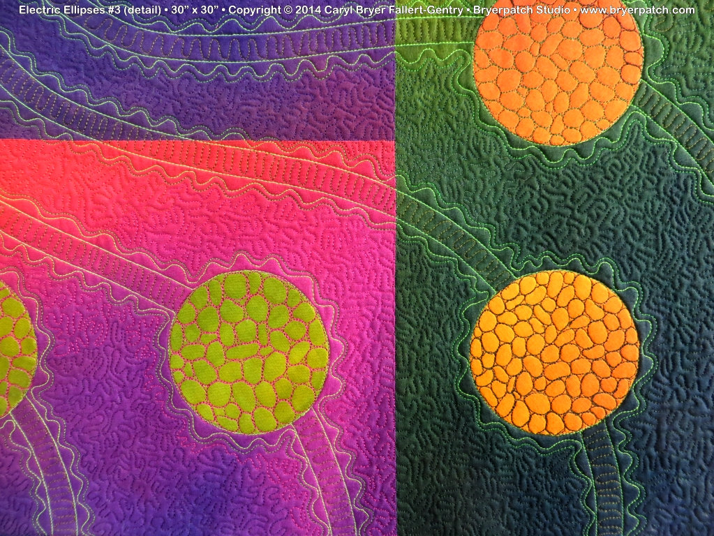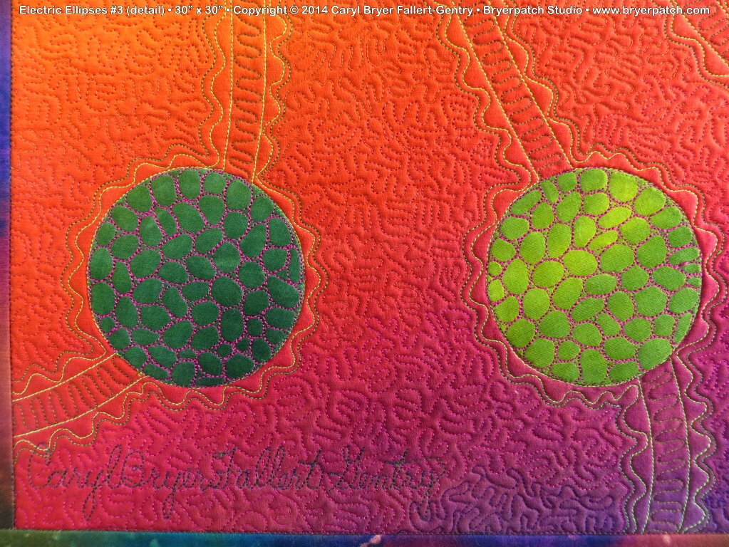 The quilting was done in organic patterns, which make the circles look like part of a microscopic organism.