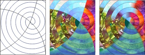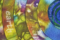 I didn’t like the sharp division between colors, so I turned the drawing into a bitmap and blended the edges in Corel PhotoPaint. I added the words earth, water, fire, air, and return in semitransparent lettering.