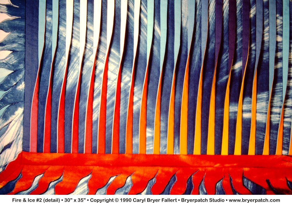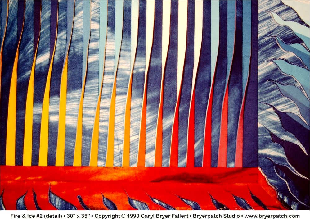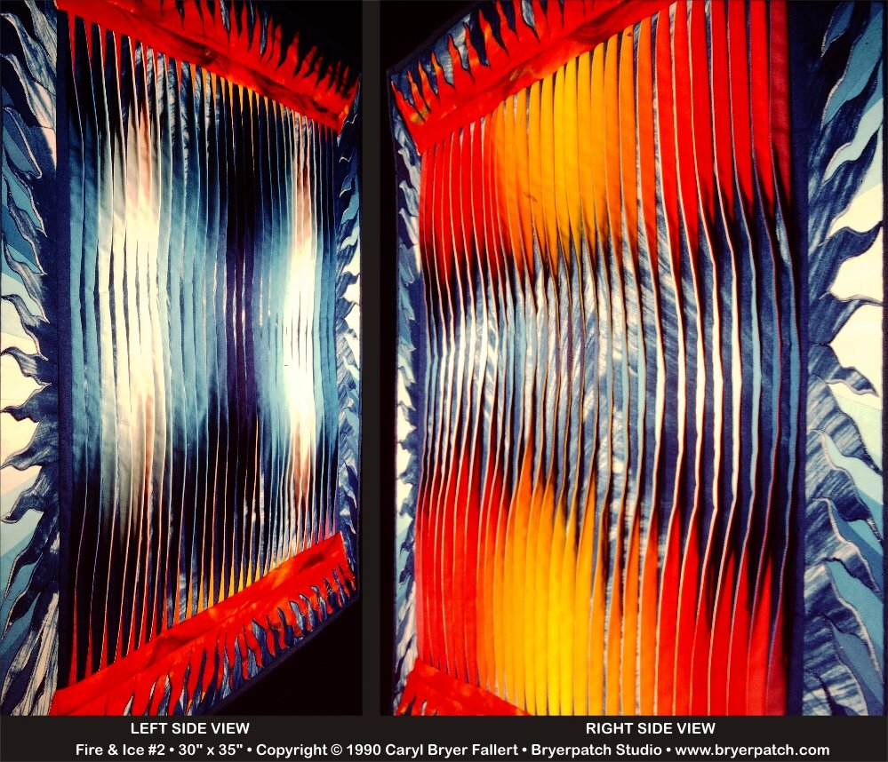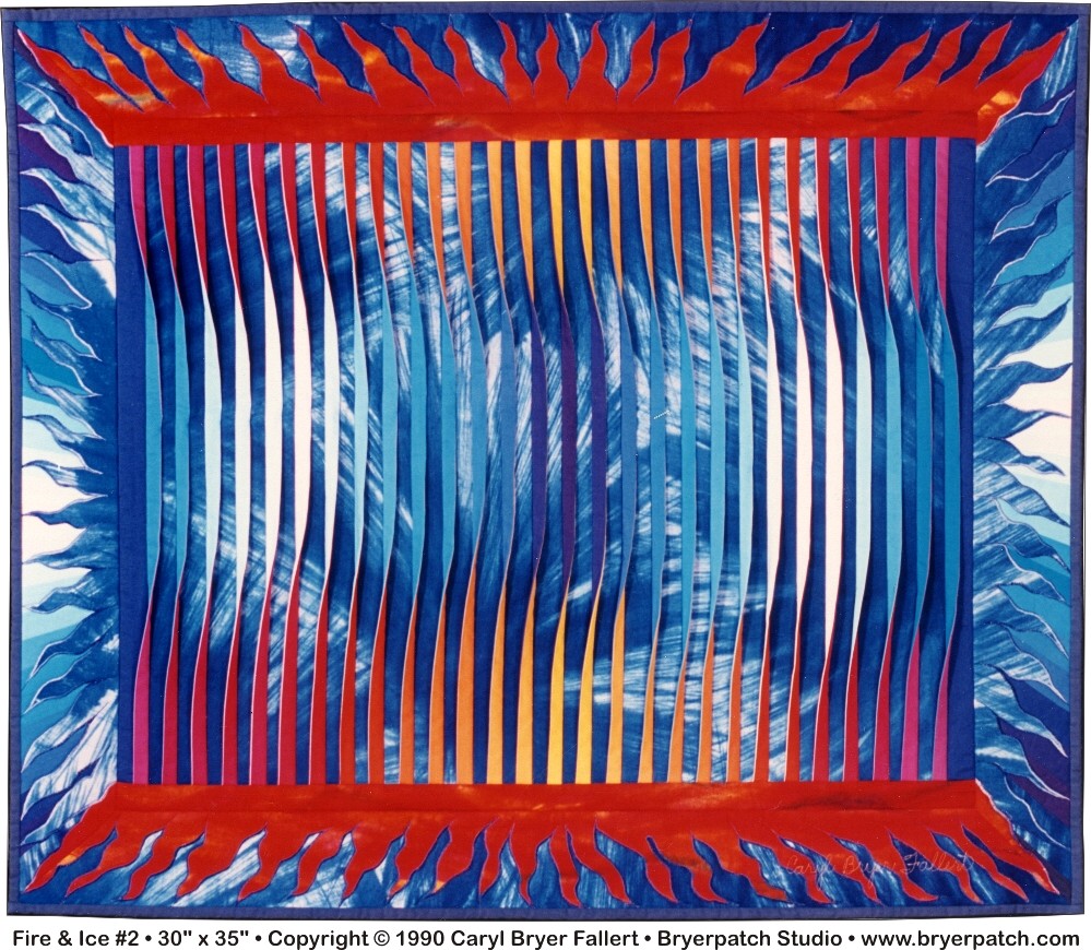 Concept This is one of a series of quilts in which three-dimensional, constructed tucks are incorporated into a background fabric. The background and border fabrics were hand painted with dye and the fabrics in the tucks were hand dyed in color gradations. The use of graduated colors and values and the twisting of the tucks from one side to the other creates the illusion of movement and light on the surface of the quilt.