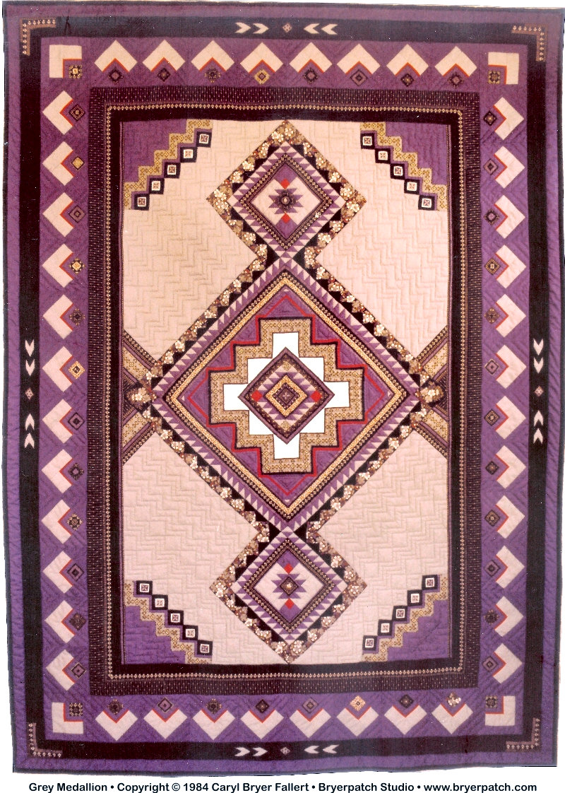 This is one of my very early experiments in quilting. The design was drawn on graph paper and colored with pencil and marker. Many of the design motifs were inspired by Navajo rugs.