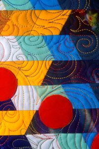 In contrast to the geometry of the pieced quilt top, is