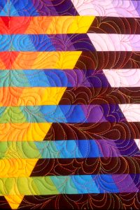 pieced quilt top, is done in swirling, free-motion, organic
