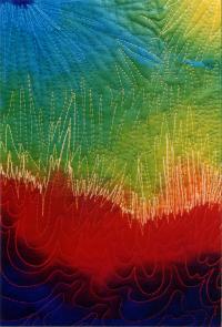 by painting fabric with fiber reactive dye, then embroidering and quilting