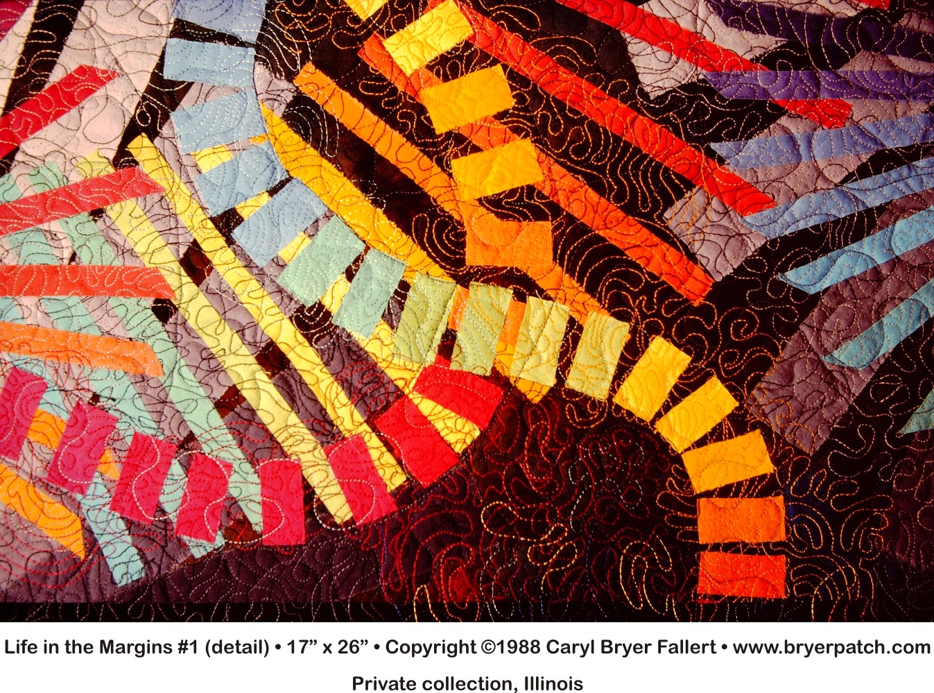 This was the very first quilt in which I use free-motion stitching. |