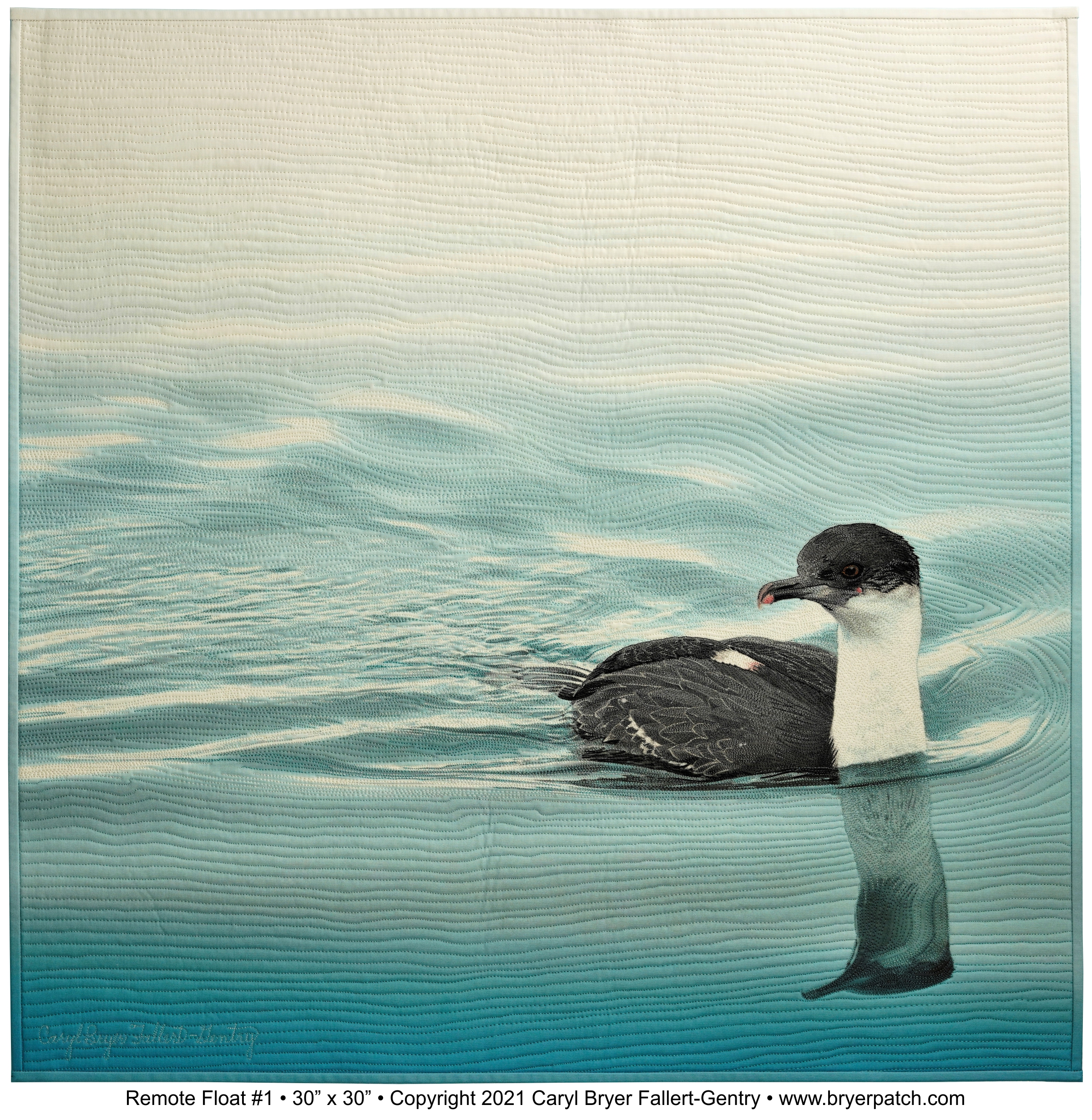 In February 2020 we did a photographic workshop/tour in Antarctica. I loved the serenity of this cormorant, floating among the ice bergs in the remote and pristine wilderness of Neco Harbor. I decided to incorporate a lot of negative space in my design and digitally painted the background in a gradation from aqua to white. My design and matching custom binding strips, were printed by Spoonflower.com