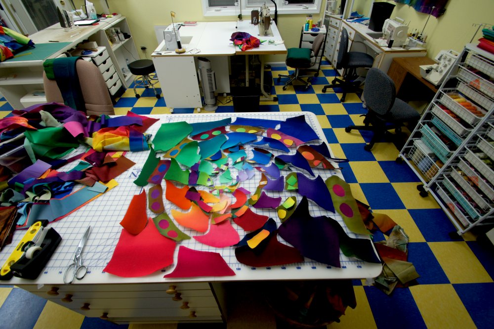 Here colors have been chosen and the templates cut in preparation for piecing. |