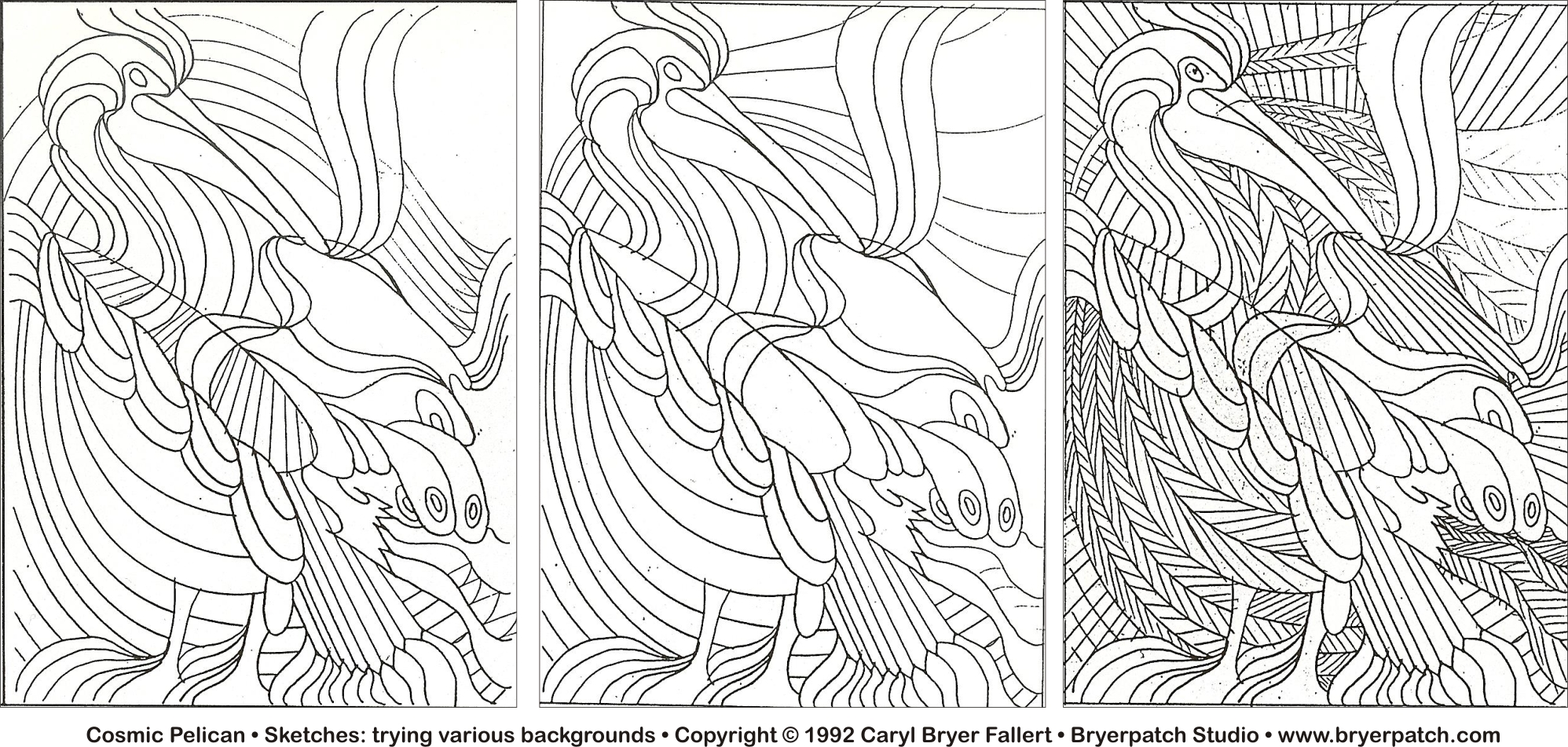 Cosmic Pelican • Sketches: trying various backgrounds |