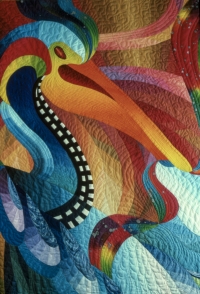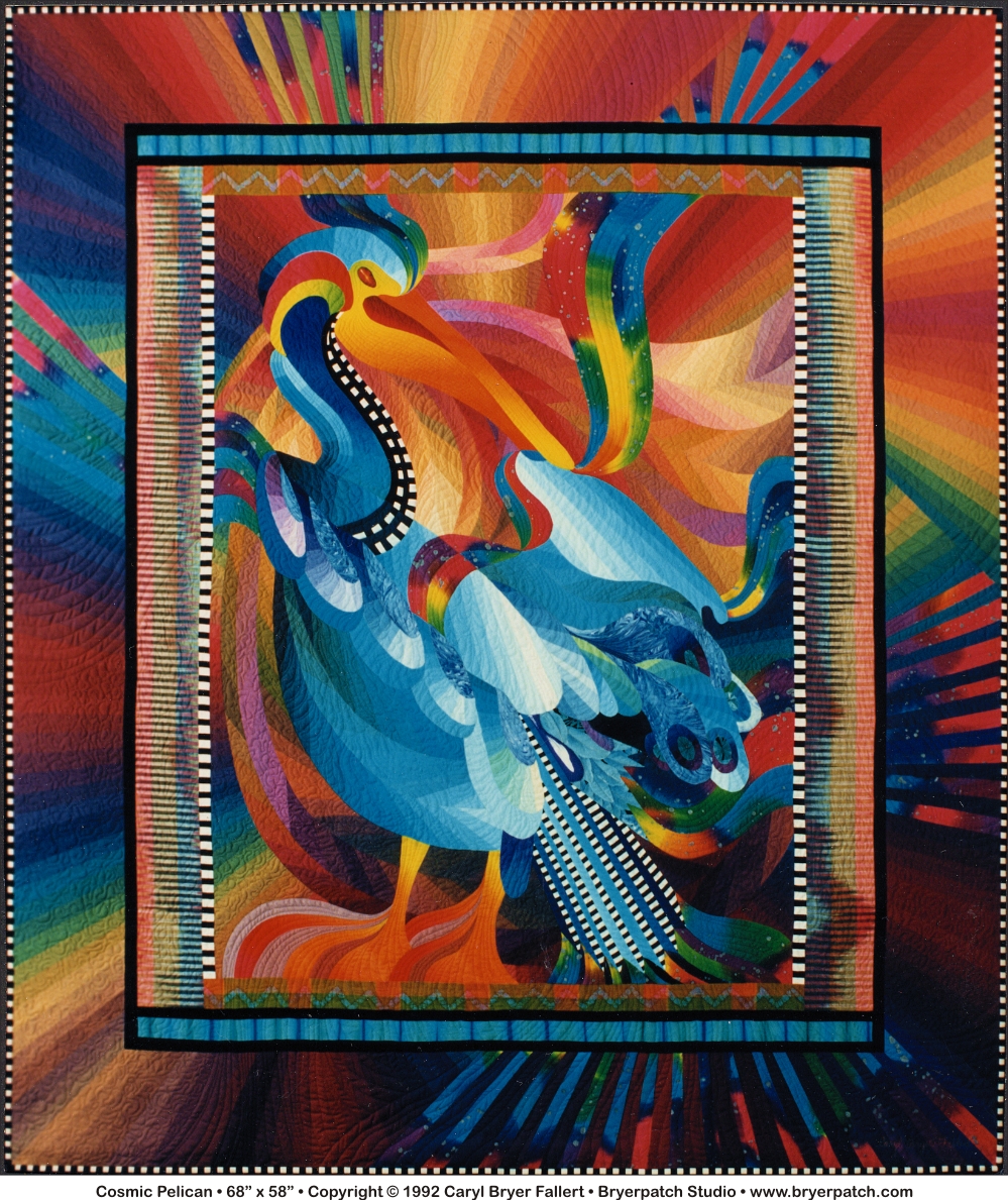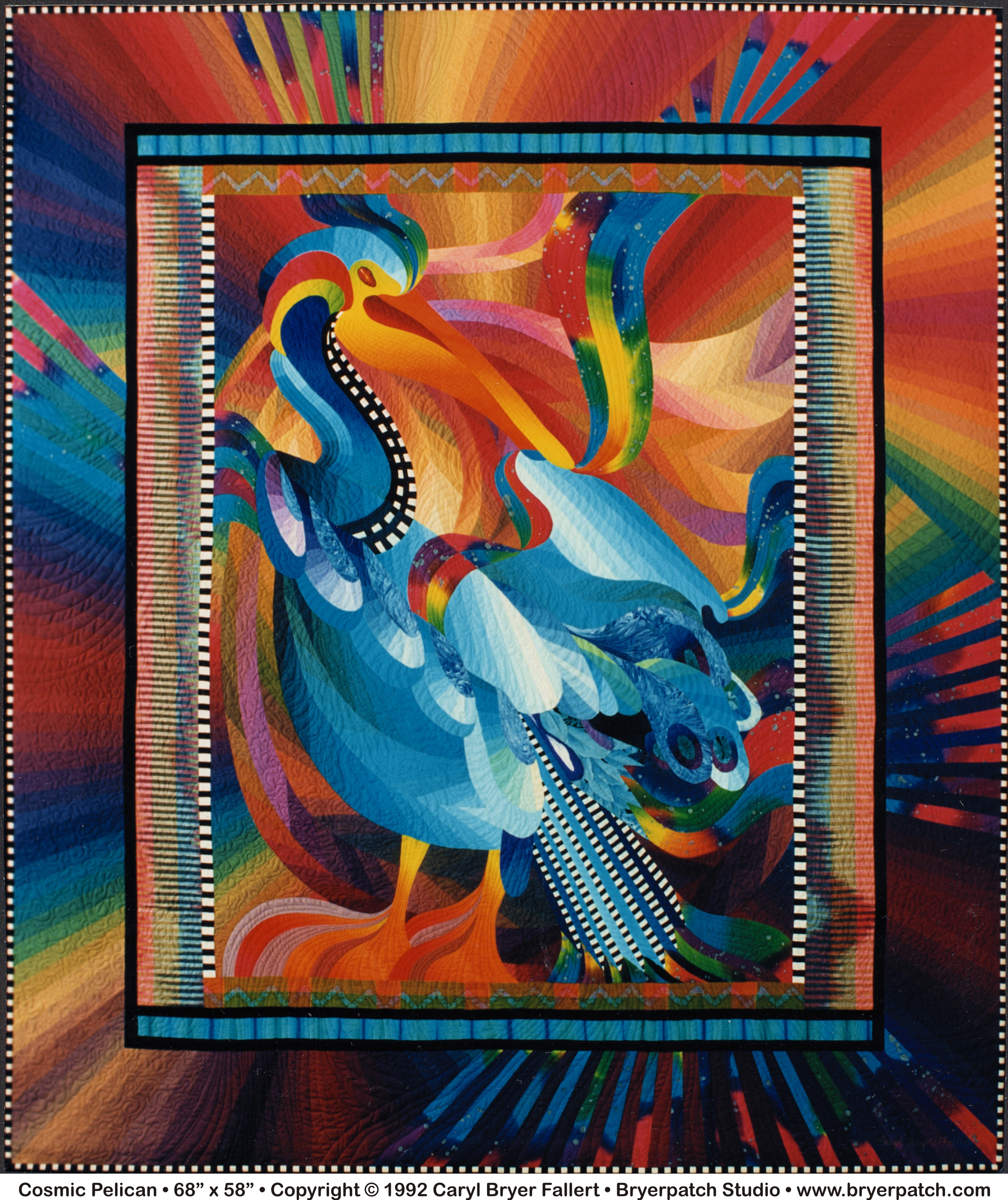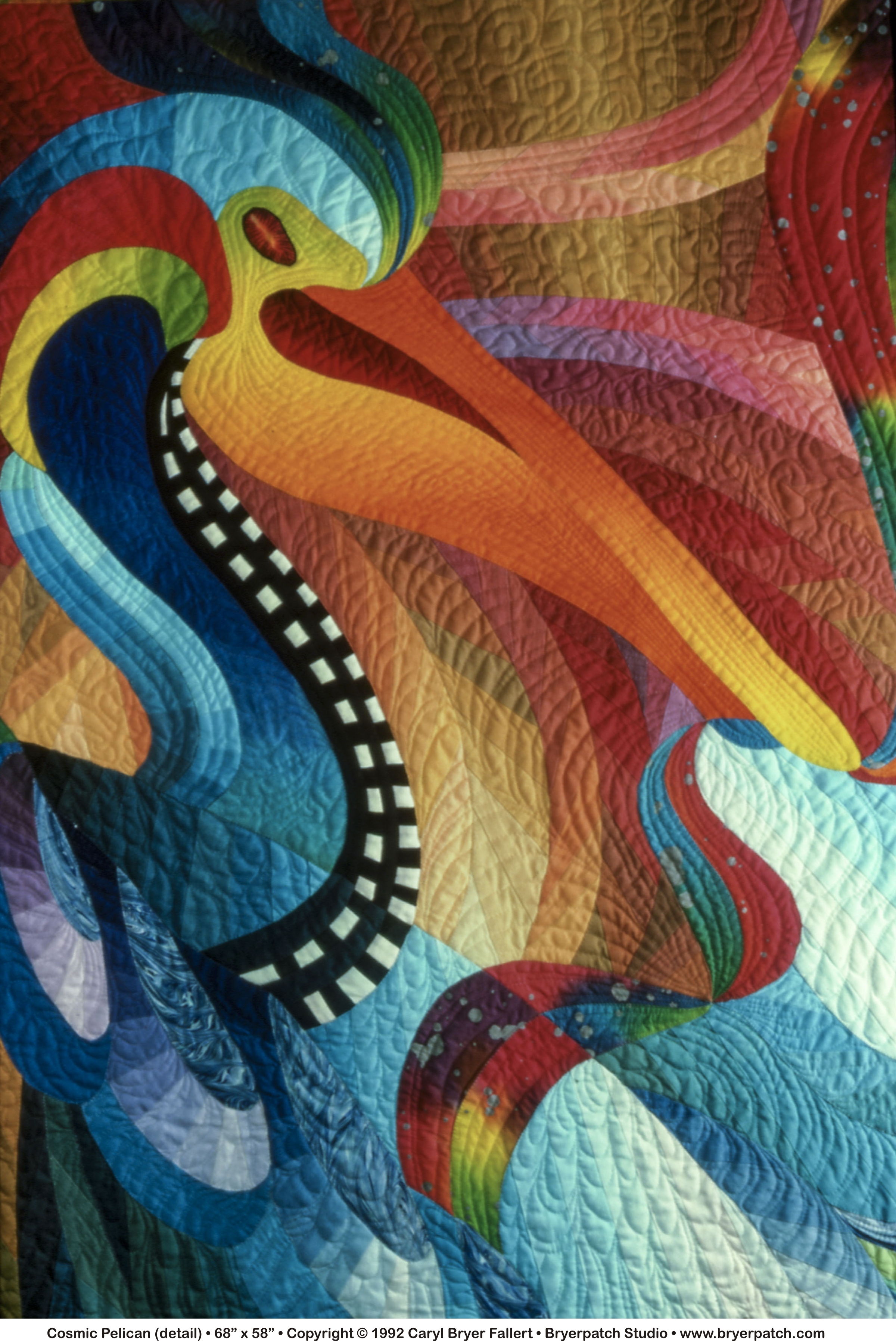 pelican. The bird itself is pieced from fabric dyed in various gradations