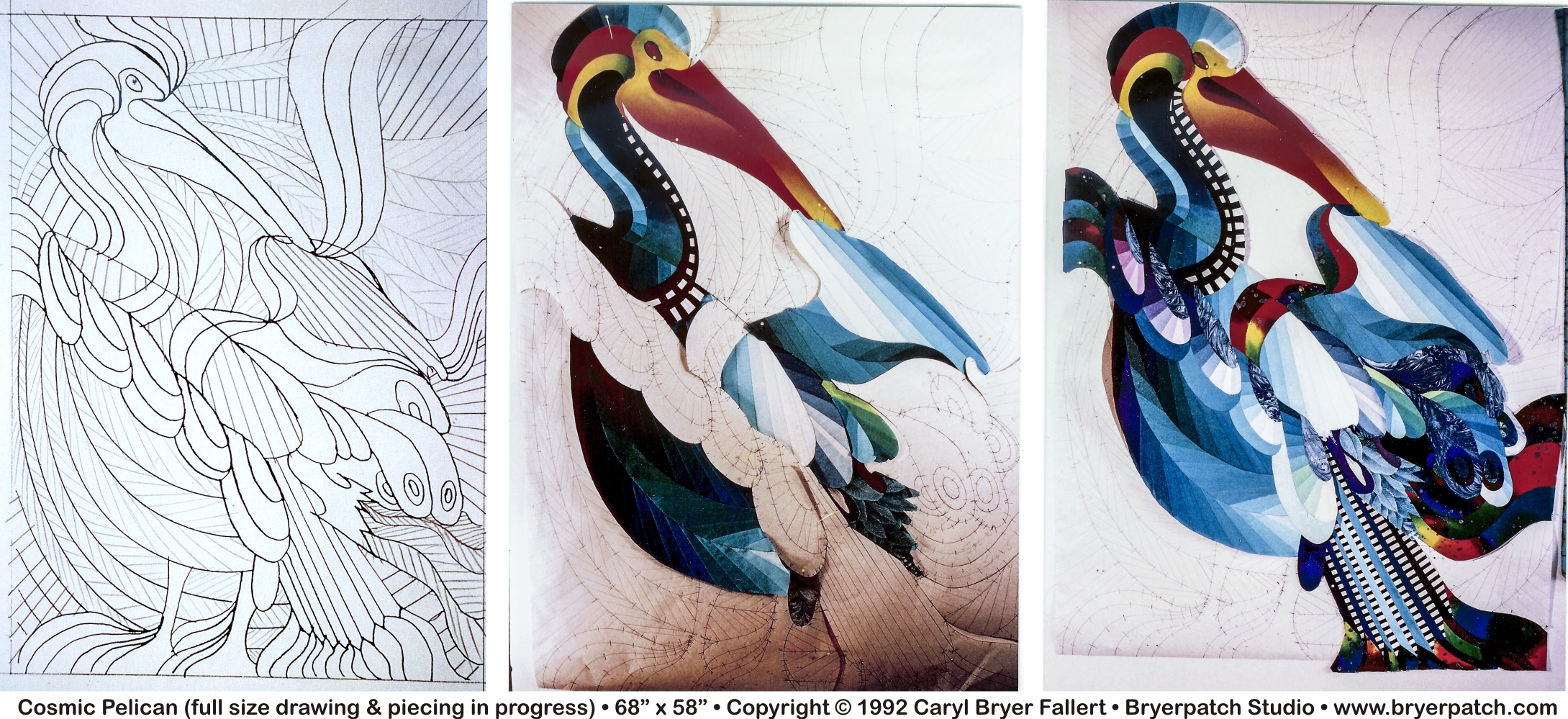 The design for this quilt began in 1990 with a simple line drawing of a pelican