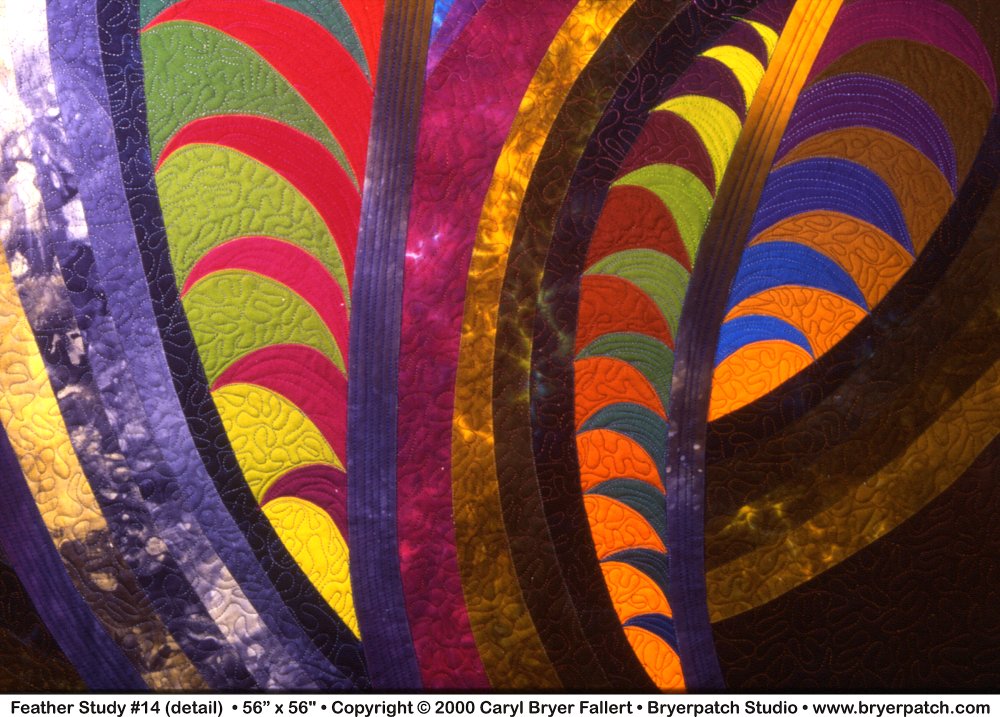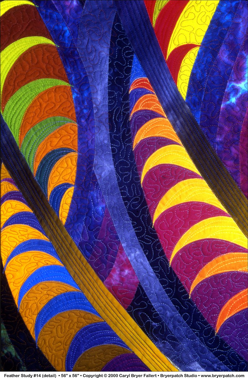 a close-up view of a feather. This quilt is a fantasy feather