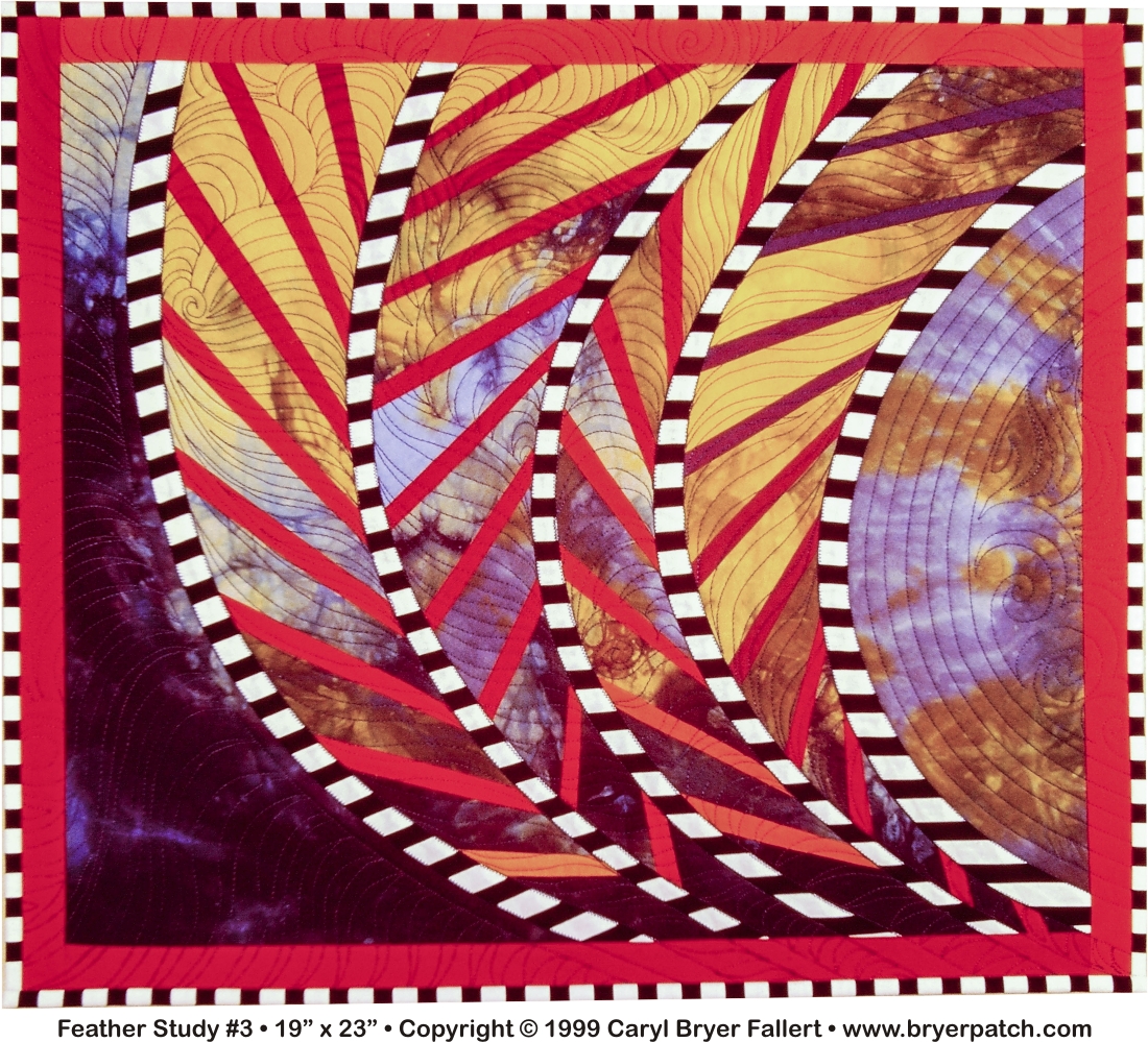 This is the third in a series of quilts based on fantasy feathers and exploring intersecting color and value gradations. |