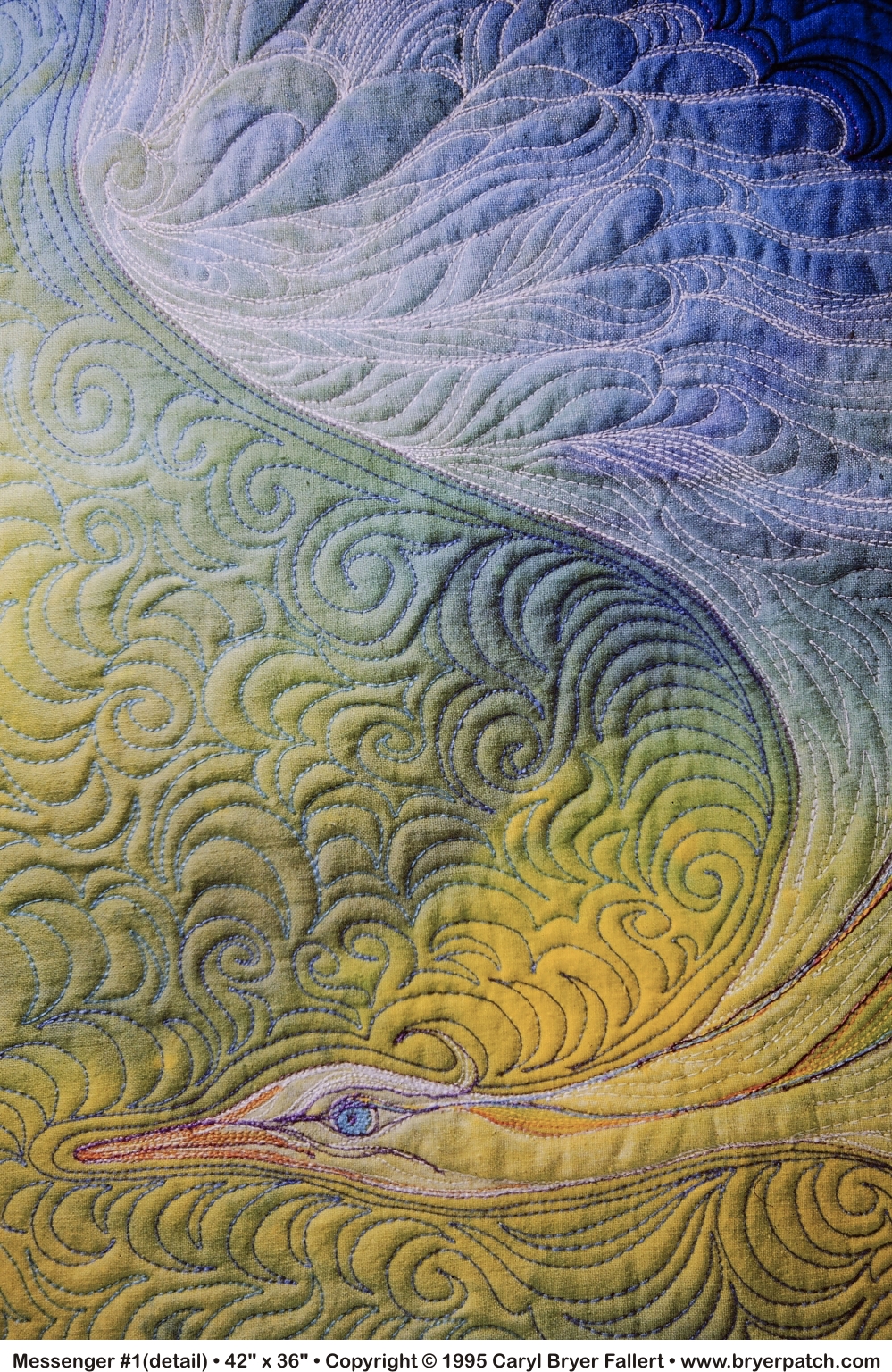 quilting of the bird. The quilting was done with #30 cotton top stitching